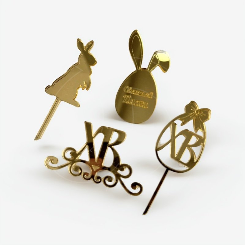 Доставка Набор топперов декоративных акриловых "Пасхальный набор" Золото 4 шт из магазина в вашем городе: